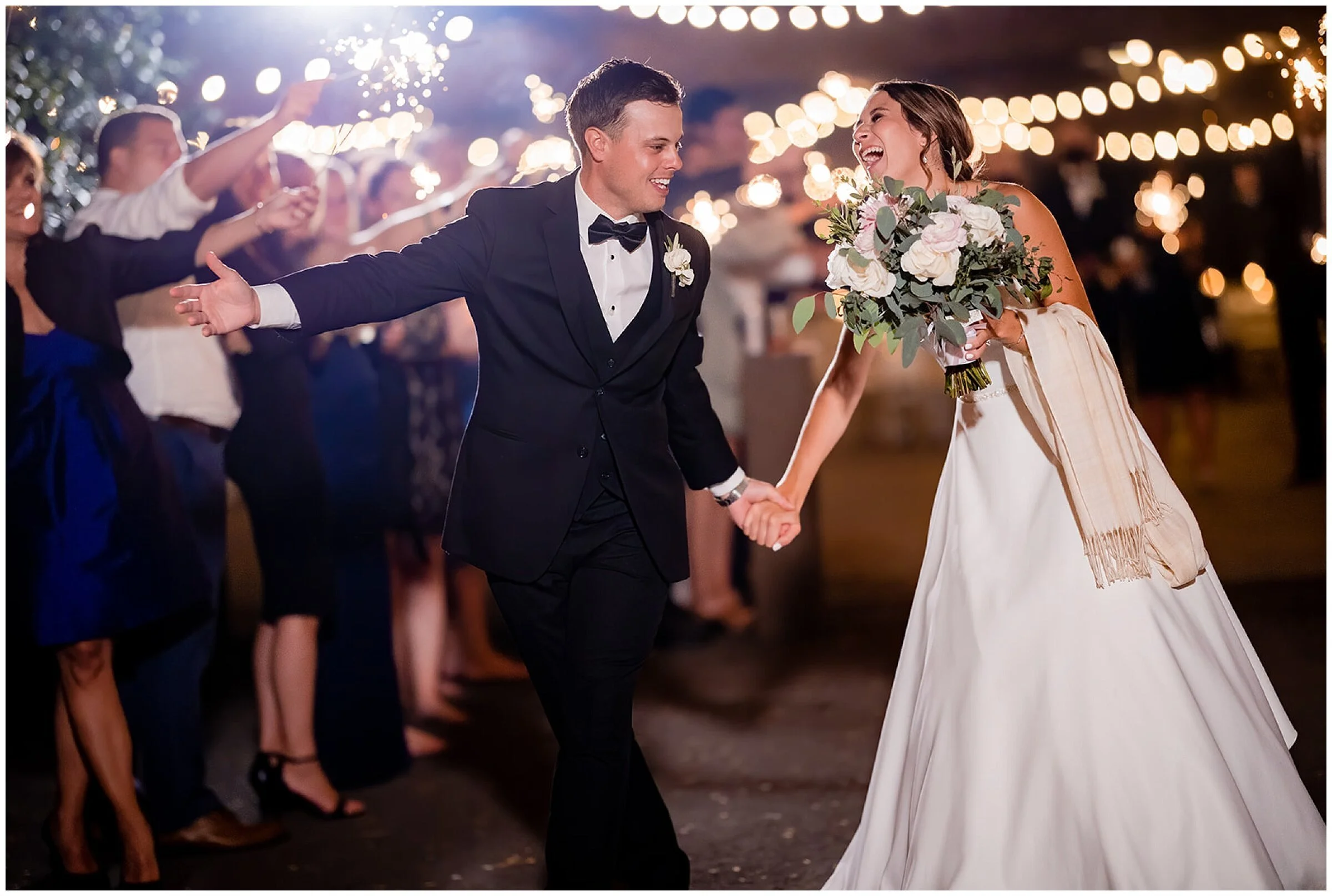 At the reception, Brittany and Taylor had the sweetest first dance under the fairy lights. From the heartwarming toasts to the father-daughter and mother-son dances, everything about the reception felt so full of love. And once the DJ switched up the music and the dance floor was opened for the guests, everyone just let loose! The guests did not fail to impress with their dance moves! Brittany and Taylor had a grand sparkler exit where their loved ones lined up to say their goodbyes. And as the newlyweds made their way out, they danced and laughed all the way!