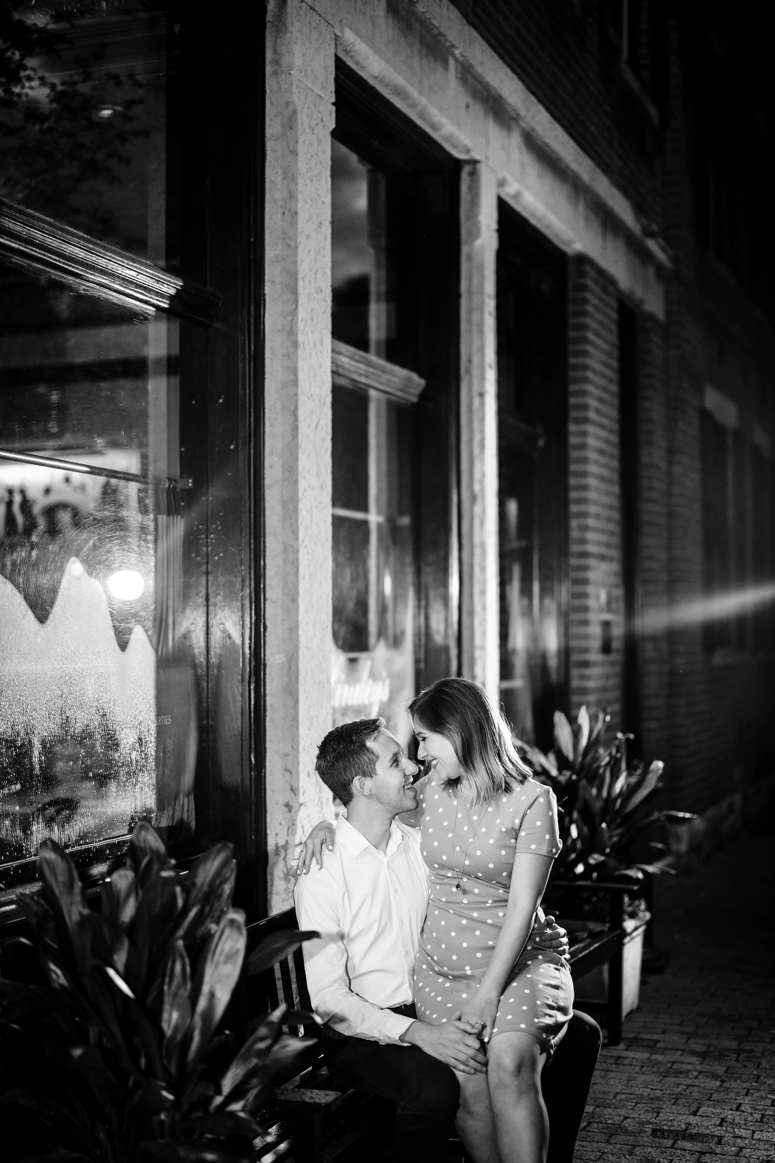 We had an amazing time exploring downtown and German Village with Melody and Brian. They met at the Ohio State University School of Architecture, so we started there capturing a place very meaningful to them. Their evening engagement session continued after dark so that we could get some gorgeous night shots of the city and romantic evening lighting in German Village.