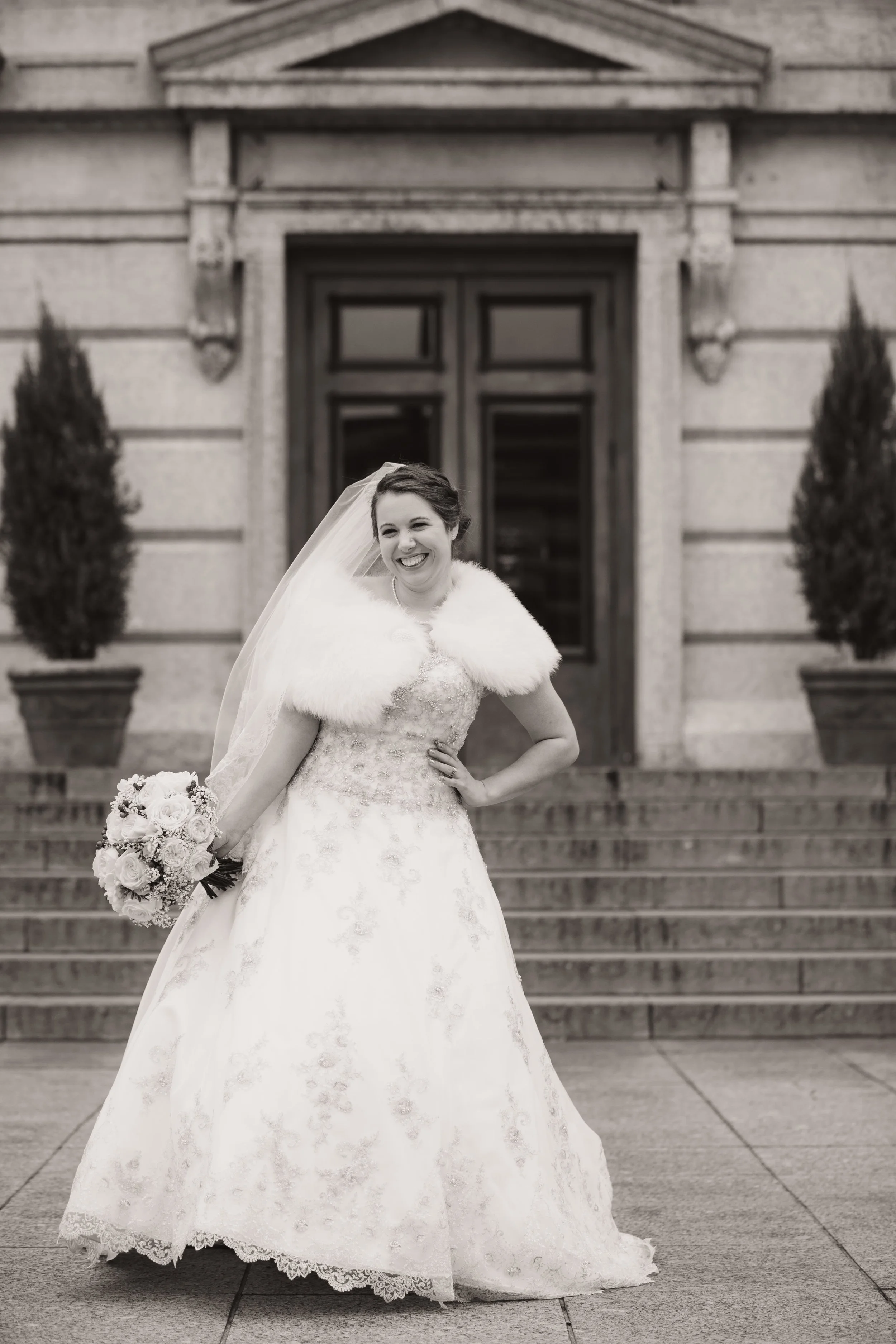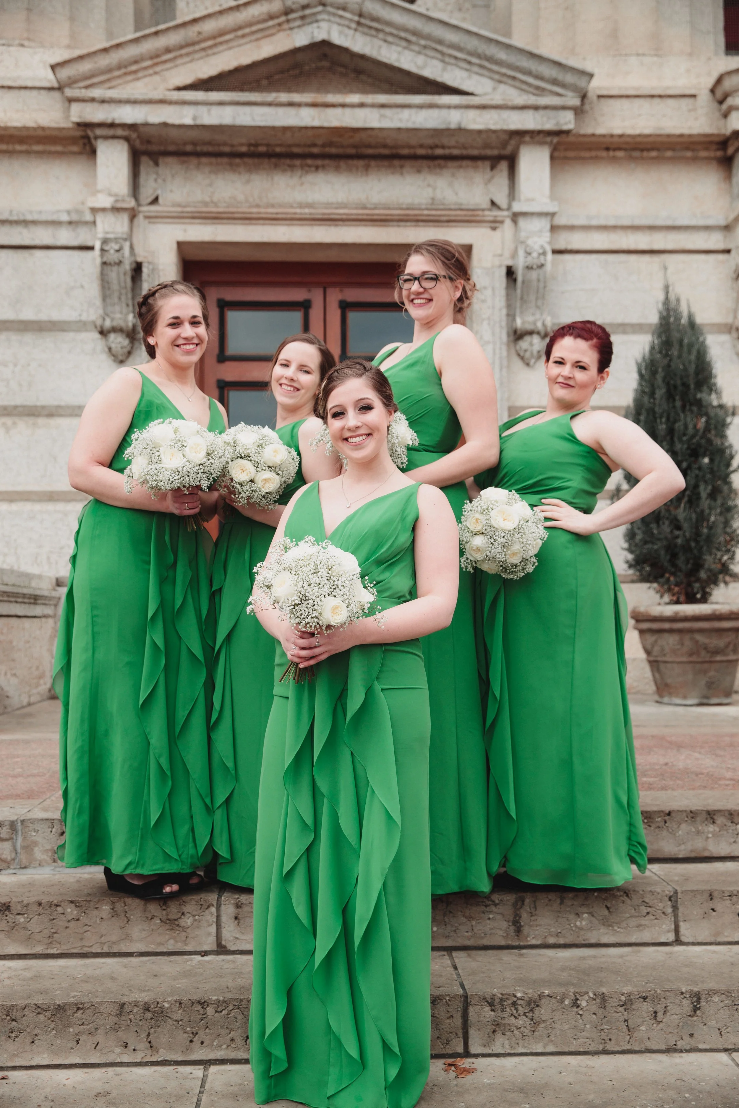 We started at the Ohio Statehouse. The weather was a bit chilly, so we stayed inside as much as possible, but our couple wasn't afraid to venture outside for a few pictures. Caitlin, Nick and their bridal party all had big, funny personalities. Naturally, we wanted to capture this during their portrait sessions! This group was not afraid to be silly on camera which made our job easy and fun. After the Statehouse, it was off to the Makoy center in Hilliard, Ohio for the ceremony and reception.