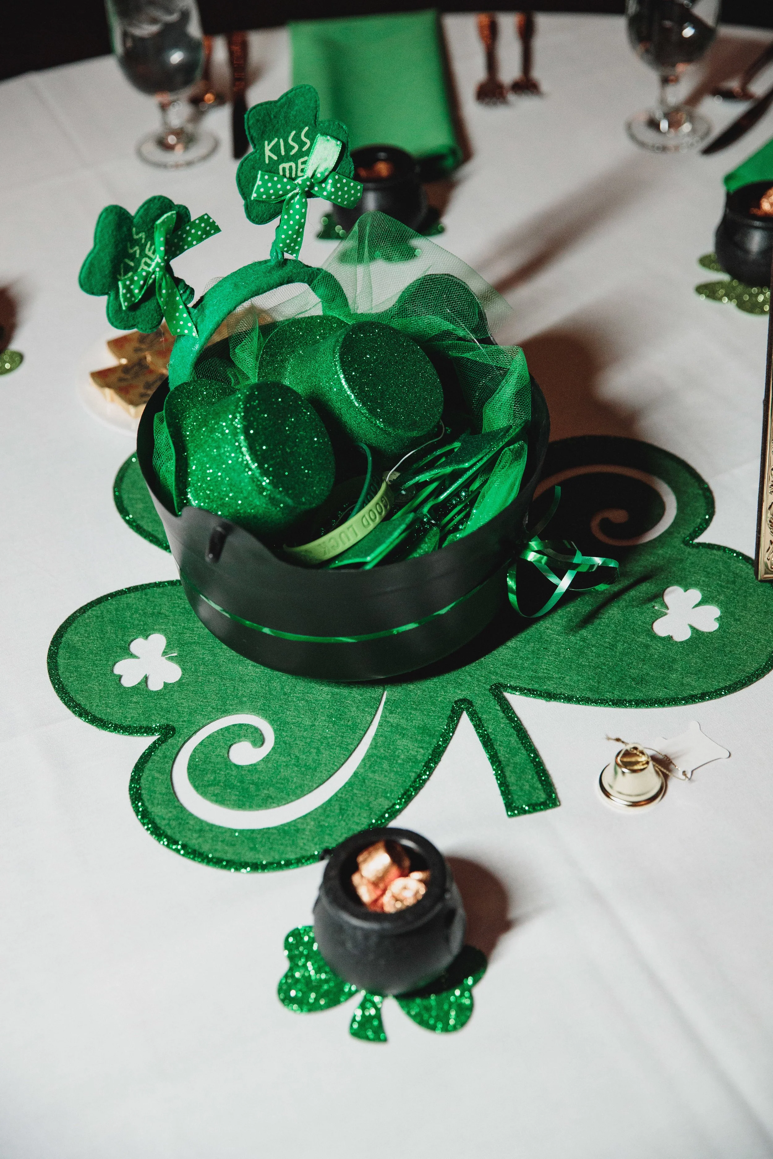 The reception space was filled with details of St. Patrick's Day. The Makoy Center boasts a huge dance floor, which was a must have in order to feature the many dance routines this couple had planned. Caitlin teaches dance, so dancing was huge part of this reception. From Irish Step dancers and Tap Dancers, to a choreographed first dance with the Bride and Groom, it all ended with the entire bridal party on the dance floor dancing to "Don't Stop Believin"!