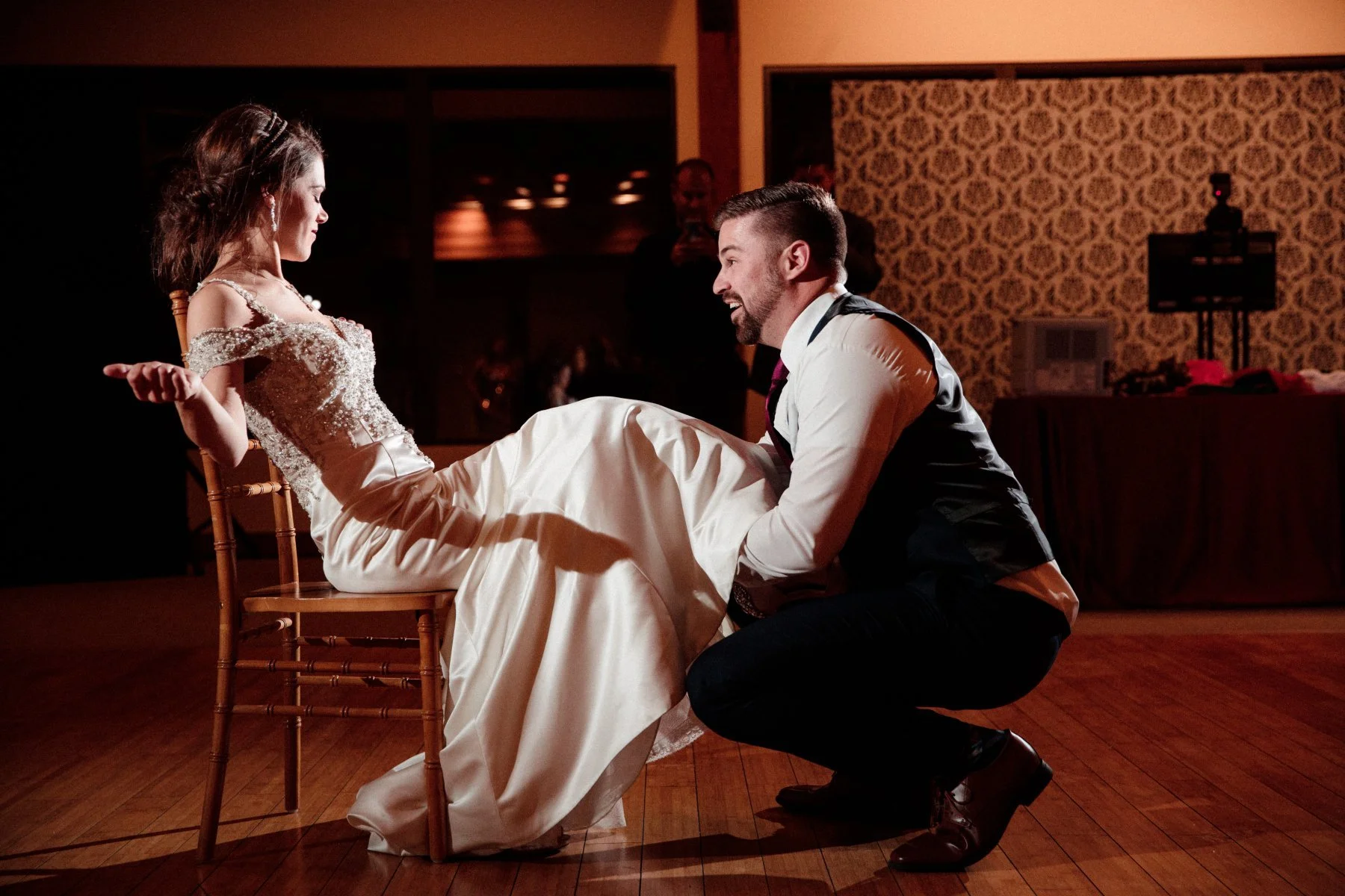 Being limited to shooting mainly inside or during bad weather can prove to be a challenge for many photographers. While shooting outside on a cloudy fall day or under a blooming spring tree may be easy for many levels of photography, the true professionals are able to shoot in any situation. I began my photography career shooting mainly in studios and using high fashion lighting on location. While I am thankful to have flattering natural light when it is available, I also love shooting indoors and using creative lighting to make unique photographs that bring out the best qualities of my clients. We have a light for every job, but I especially love my "Martin Scorsese" lights that we use for our couples to make truly dramatic images filled with rich shadows and depth. I believe gorgeous images aren't just taken, they are made. It all starts with amazing light, no matter what the scenario.